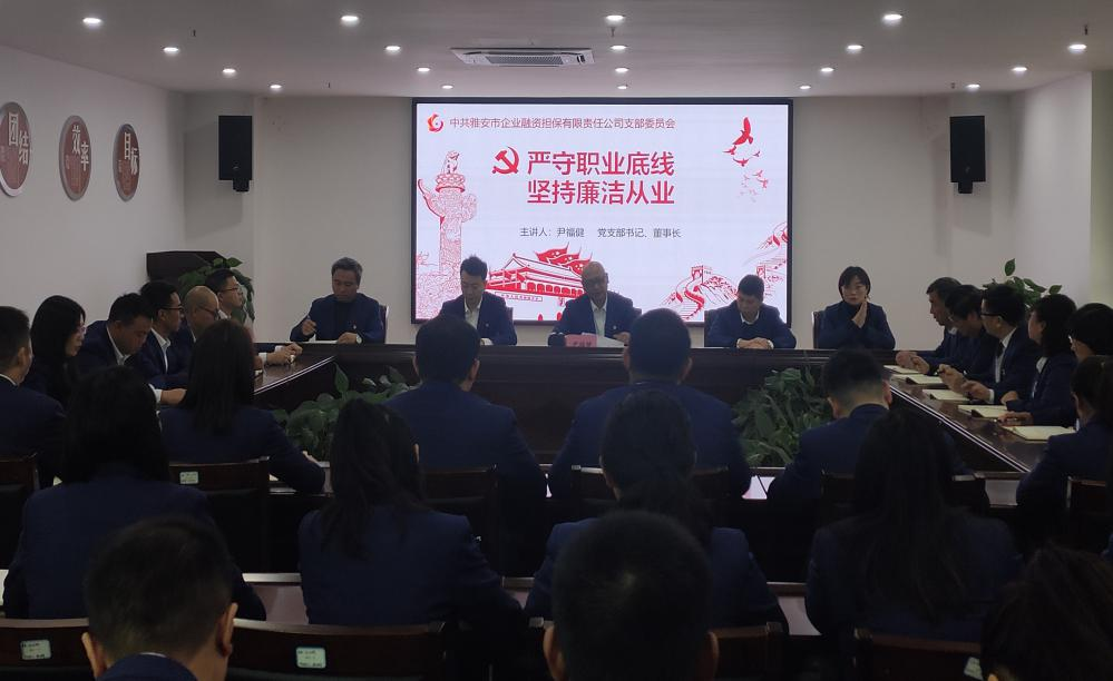 三是講黨課強黨性。市擔保公司黨支部書記、董事長尹福健以“嚴守職業(yè)底線,堅持廉潔從業(yè)”為題,圍繞“認識新形勢反腐敗斗爭的形勢、腐敗出現(xiàn)的原因和防范措施、學習廉潔法律法規(guī),防范廉潔風險、增強黨員領(lǐng)導干部拒腐防變的能力”四個方面,結(jié)合公司實際為黨員干部上了一堂生動的廉政黨課,警示黨員干部要增強“四個意識”,堅定“四個自信”,做到“兩個維護”,強化黨性修養(yǎng),自覺增強“免疫力”。