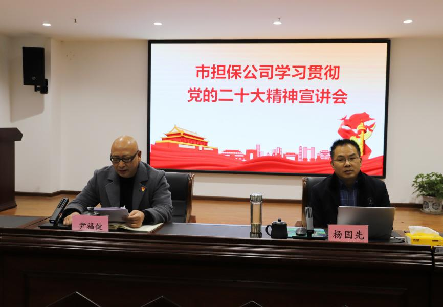 為深入學(xué)習(xí)貫徹黨的二十大精神,12月1日,市擔(dān)保公司邀請(qǐng)市委黨校副校長(zhǎng)楊國(guó)先作黨的二十大精神專題宣講。市擔(dān)保公司黨支部書記、董事長(zhǎng)尹福健主持會(huì)議。