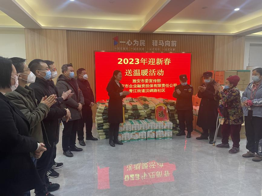 在新春佳節(jié)來(lái)臨之際,為讓困難群眾過(guò)上一個(gè)溫暖、祥和的春節(jié),1月13日,市擔(dān)保公司與市委宣傳部、漢碑路社區(qū)共同開展“迎新春送溫暖”活動(dòng),用愛(ài)心詮釋責(zé)任,用行動(dòng)書寫擔(dān)當(dāng)。