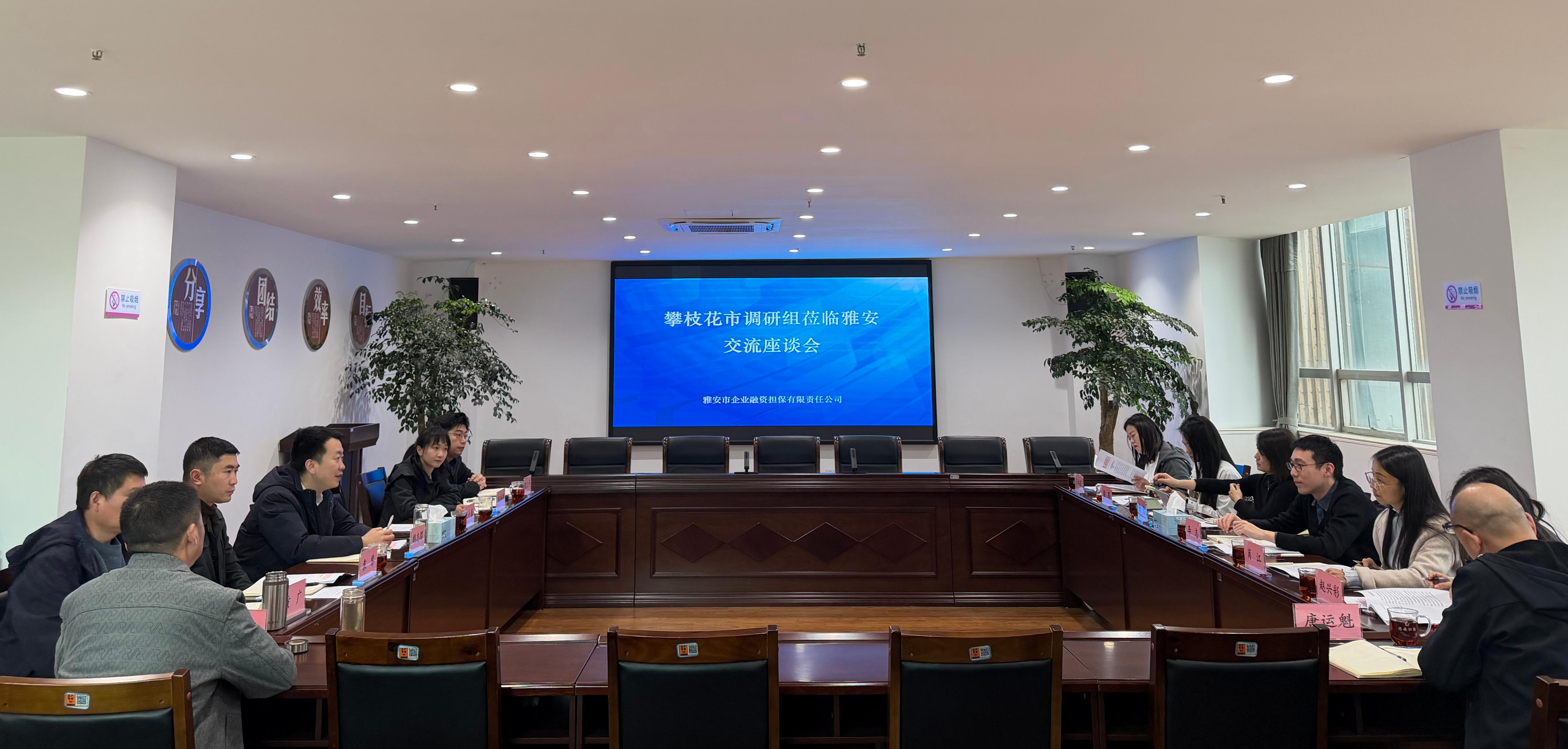 3月16日,攀枝花市財(cái)政局副局長(zhǎng)李志帶隊(duì),攀枝花發(fā)展(控股)集團(tuán)、攀枝花市創(chuàng)業(yè)貸款融擔(dān)公司一行來(lái)到雅安,就政府性融資擔(dān)保公司內(nèi)部治理與制度建設(shè)、業(yè)務(wù)開展、體系建設(shè)及風(fēng)險(xiǎn)控制等方面開展調(diào)研。雅安市財(cái)政局金融資本科科長(zhǎng)劉冉婷參加座談會(huì)。
