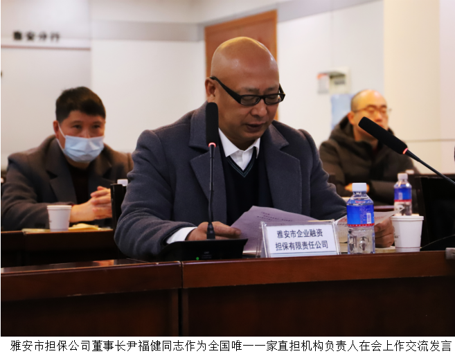 雅安市擔保公司董事長尹福健同志作為全國唯一一家直擔機構(gòu)負責人在會上作交流發(fā)言